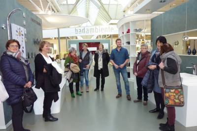 Der Rundgang endete in der ausgezeichneten Bäderwelt des „Badambiente“. „Im Badambiente gibt es keine Trennung zwischen günstigen und teuren Einrichtungen“, so Herr Vöcking, denn auf die ausgewogene Mischung kommt es an. Im Badambiente können sich Kunden bauliche Anregungen holen oder sich auch ein Bad zusammenstellen lassen. Die Zusammenstellung der ausgesuchten Artikel wird im Folgenden an den gewünschten Sanitärhandwerksbetrieb weitergereicht, der auch den Einbau vornehmen soll. Zwischen ausgestellten Handwaschbecken, mordernsten WC-Spülern und Brausen endete der eindrucksvolle Besuch bei Frau Rendel Pietsch in Ahaus.