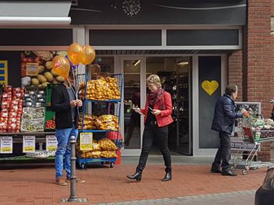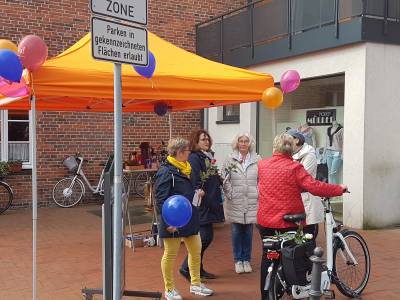 Gemeinsam mit der CDU verteilte die Frauen-Union Rosen zusammen mit Grußkarten an die Frauen in Legden neben Moden Müller.